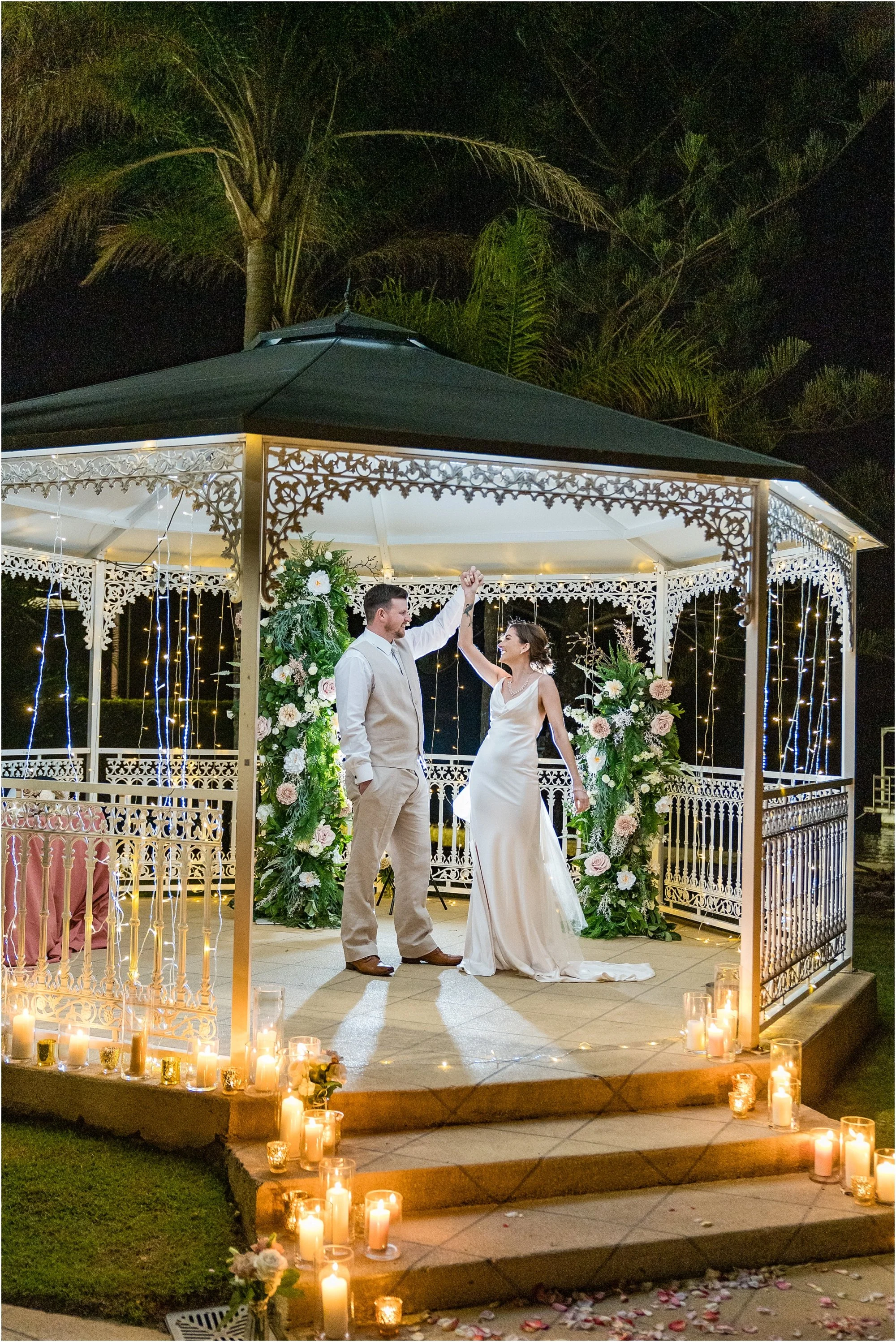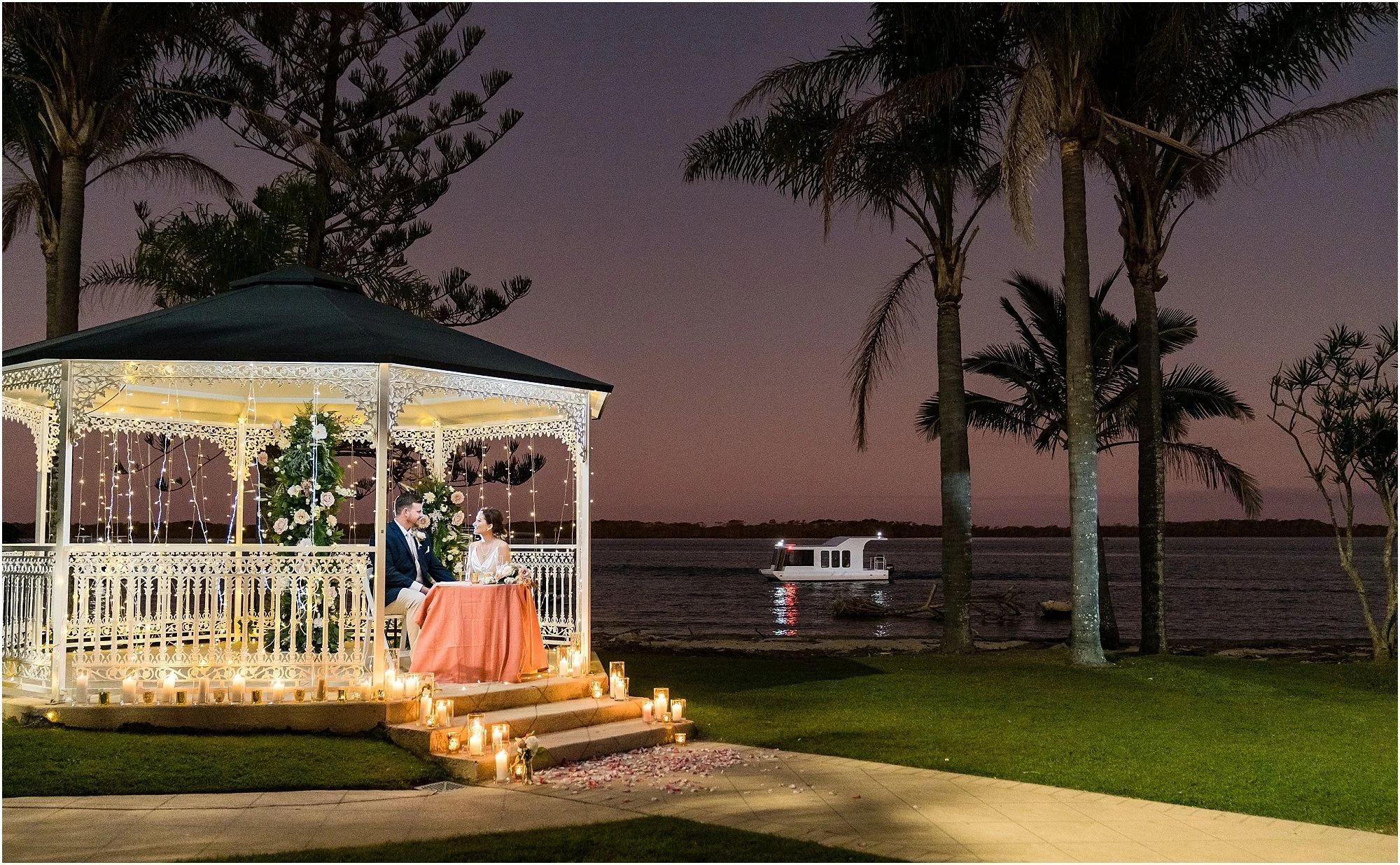The venue's remarkable ambiance paints a picture-perfect scene—an inviting gazebo perched at the water's edge of Golden Beach. As you stand beneath its sheltering embrace, the serene panorama of Pumicestone Passage stretches forth, guiding the eye towards the captivating allure of Bribie Island. The tranquil waters and sun-kissed shores lend an air of enchantment to your ceremony, infusing your vows with the very essence of magic. This idyllic setting, reminiscent of a tropical paradise, promises to make your special day an experience that lingers in your heart forever.